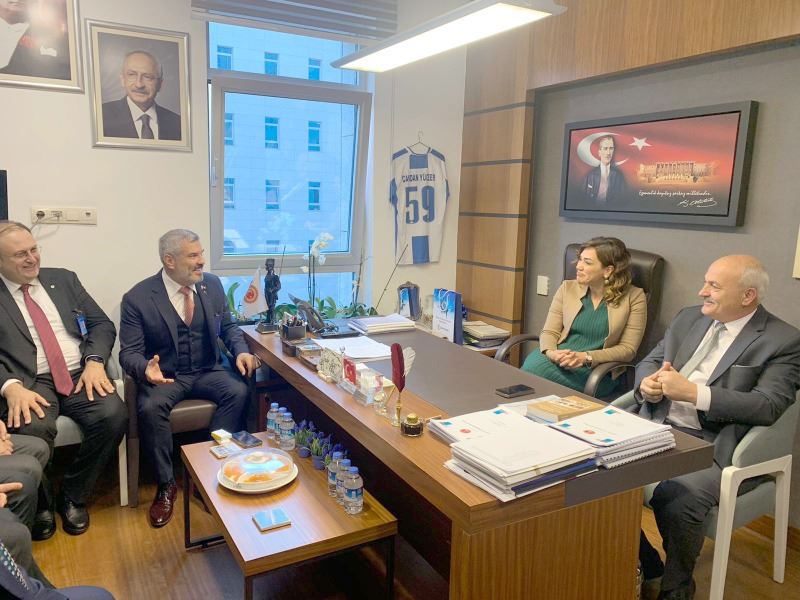 ÇTSO heyeti, TBMM ziyaretleri sonrasında Türk Metal Sendikası (TMS) Genel Başkanı Pevrul Kavlak’ı ziyaret etti. Başkan Kavlak, bölgeye karşı verdiği önemden bahsederek, “Çerkezköy, Kapaklı, Saray gelişimin sürekli arttığı ve yatırımların her geçen gün daha da fazlalaştığı önemli noktalardan. Sizleri burada görmek bizi ayrıca mutlu etti. Yeni görevinizde hepinize başarılar diliyorum. Yapacağınız çalışmalar ile inşallah kazanan hem bu bölgelerimiz hem de ülkemiz olur.” dedi.
