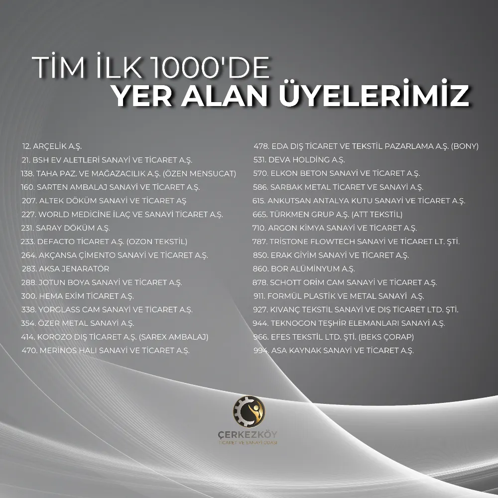 Başkan Ahmet Çetin, “Ülkemizin en çok ihracat gerçekleştiren 10 ülke arasında yer alma hedefinde Çerkezköy Ticaret ve Sanayi Odası üyeleri de önemli bir rol oynamaktadır. 32 firmamızın Türkiye’nin İlk 1000 İhracatçısı arasında yer alması, bölgemizin üretim ve ihracat gücünü bir kez daha ortaya koymuştur. Bu başarı, tüm zorluklara rağmen ihracatçılarımızın kararlılıkla yoluna devam ettiğinin göstergesidir” dedi.
