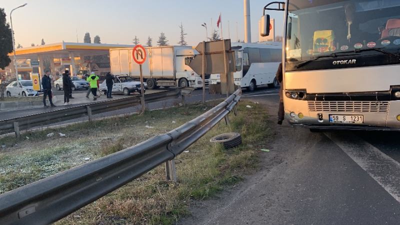 Tekirdağ'da Çorlu-Çerkezköy yolu üzerinde kontrolden çıkan otomobil ile işçi servisinin çarpışması sonucu 1 kişi yaralandı. Kaza sonrası yaralanan otomobil sürücüsü Şükrü A. olay yerine gelen sağlık ekiplerinin ilk müdahalesi sonrası ambulansla Çorlu Devlet Hastanesine kaldırıldı. Kaza anı ise güvenlik kamerası tarafından saniye saniye kaydedildi. Kazayla ilgili jandarma tarafından soruşturma başlatıldı.