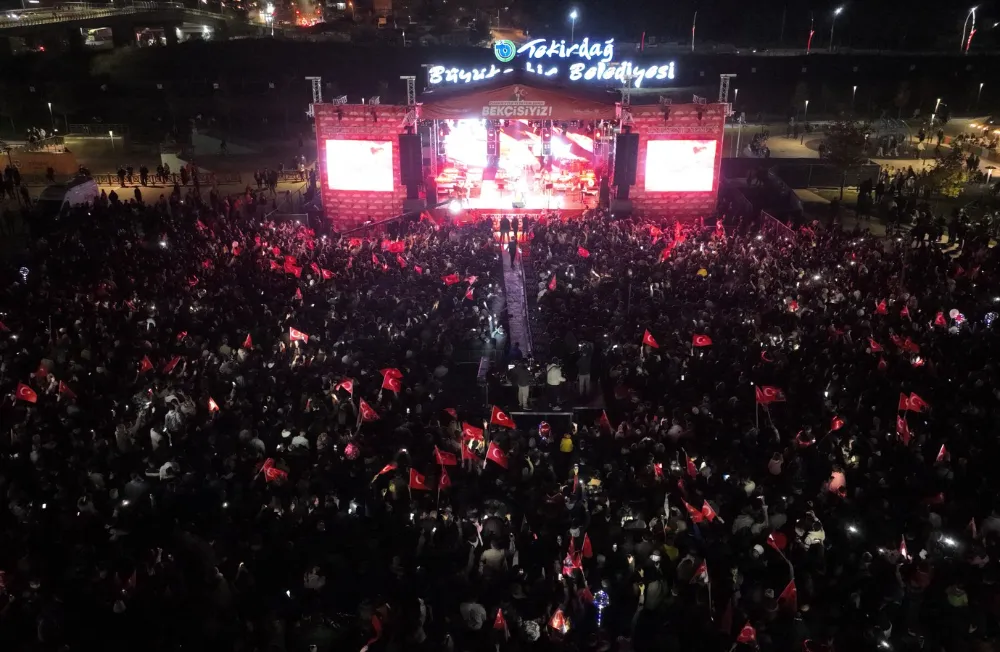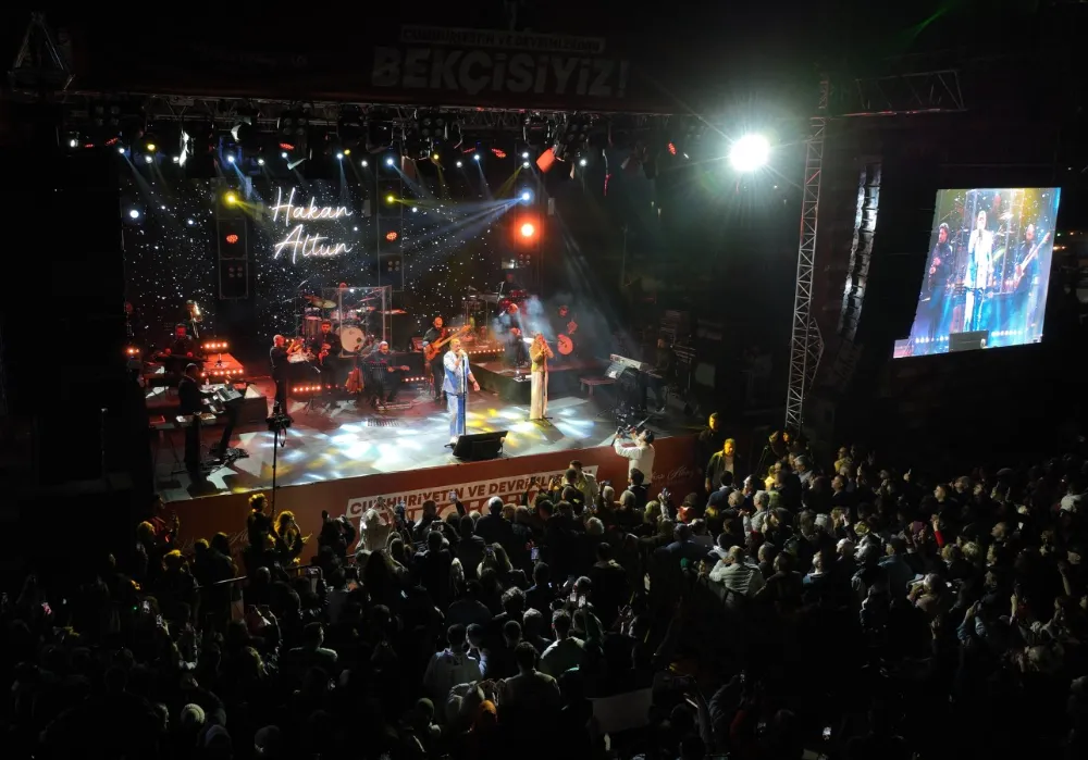 Belediye Başkanı Vahap Akay’ın konuşmasının ardından sahneye çıkan Hakan Altun birbirinden güzel şarkılarını Çerkezköy halkı için seslendirerek, Kent Park’ı dolduran on binlerce Cumhuriyet sevdalısı Çerkezköylülere unutulmaz bir gece yaşattı.