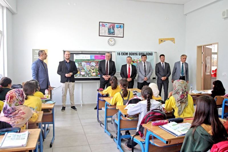 Dünya Gıda Günü nedeniyle Çerkezköy Kaymakamı Nazmi Günlü, İlçe Milli Eğitim Müdürü Hüseyin Gümüş ile birlikte okulları dolaşarak, öğrencilere süt ikram etti.