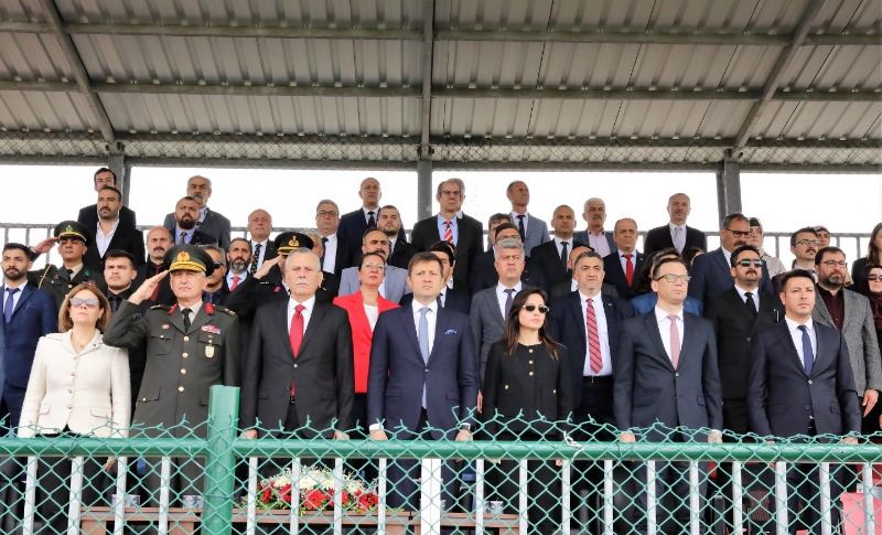 29 Ekim Spor Kompleksi’ndeki Çim Saha’da kutlamalar Çerkezköy Kaymakamı Nazmi Günlü, 3. Zırhlı Tugay Komutanı Tuğgeneral Osman Akyıldız ve Belediye Başkanı Vahap Akay’ın tören alanında bulunan öğrencilerin ve halkın 19 Mayıs Atatürk’ü Anma, Gençlik ve Spor Bayramını kutlaması ile başladı.