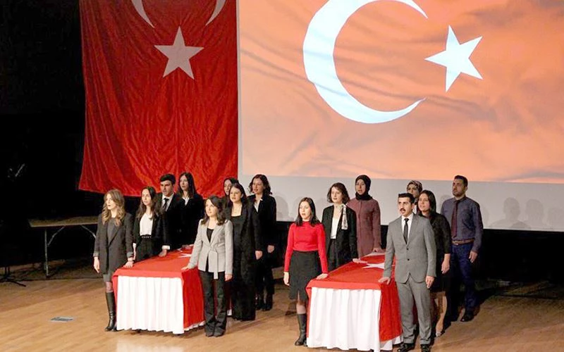 Konuşmaların ardından yeni mesleğe başlayan öğretmenler, Türk Bayrağı’na el basarak, Öğretmenlik Yemini etti. Programda Çerkezköy Kaymakamı Murat Duru tüm emekli öğretmenler adına emekli öğretmen Mustafa Salih Özkadıoğlu’na, ‘Hizmet Şeref Belgesi’ de takdim etti.