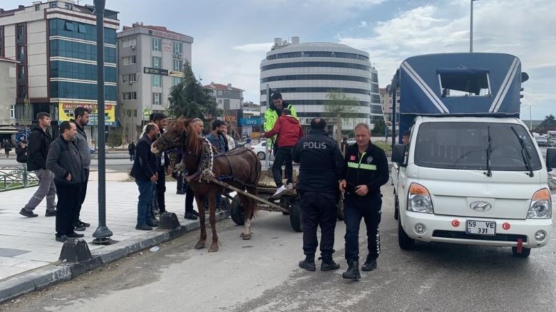 Tekirdağ’da polisin dur ihtarına uymayan at arabası ortalığı birbirine kattı. Yaşanan kovalamaca at arabasının iki araca çarparak durmasıyla son buldu.