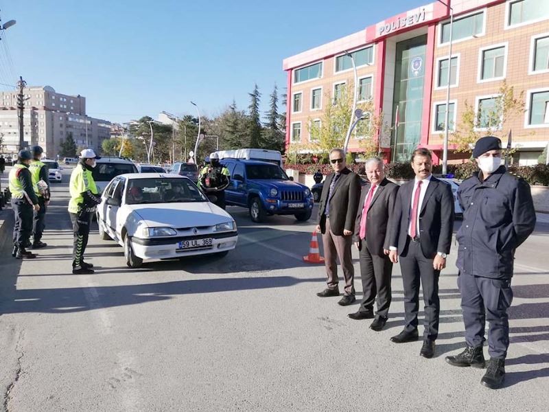 Çerkezköy Kaymakamı Murat Duru, İlçe Emniyet Müdürü Harun Özcan ve İlçe Jandarma Komutanı Serkan Engin, Hükümet Caddesi önünde seyir halinde olan araçları durdurarak, sürücüleri emniyet kemeri takma konusunda bilgilendirdi. Olası trafik kazalarında can kaybının ve yaralanmaların minimum seviyeye inmesinde kemerin önemine vurgu yapan Kaymakam Murat Duru, sürücülere 'Bi Hareketine Bakar Hayat' broşürleri verdi.