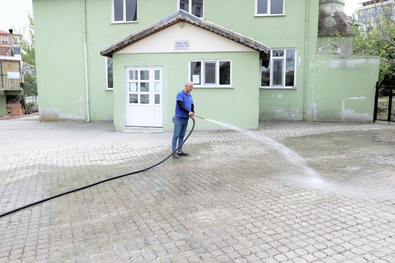 Ramazan Bayramı öncesi Çerkezköy Belediyesi tarafından ilçe genelindeki ibadet yerlerinin genel çevre temizlikleri yapıldı ve bahçeleri yıkanıyor.