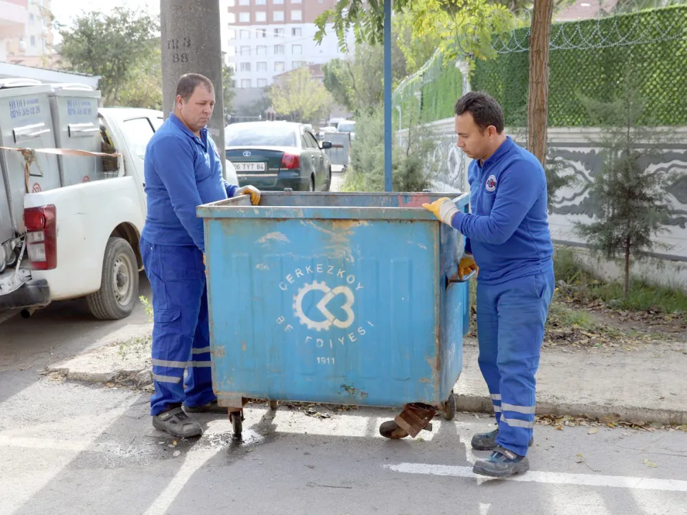Çerkezköy Belediyesi Temizlik İşleri Müdürlüğü’nün yürütmüş olduğu çalışmalar kapsamında vatandaşların da talepleri doğrultusunda kent genelinde sızma ve koku yapan, arızalı çöp konteynerlerinin yerine yeni konteynerler konuluyor. Çerkezköy Belediyesi Temizlik İşleri Müdürlüğü’nce 500 adet 770 litrelik yeni çöp konteyneri alımı yapıldığını kaydeden Belediye Başkanı Vahap Akay, “Ekiplerimiz, kentimiz genelinde arızalı çöp konteynerlerini yenileri ile değiştiriyor” dedi.