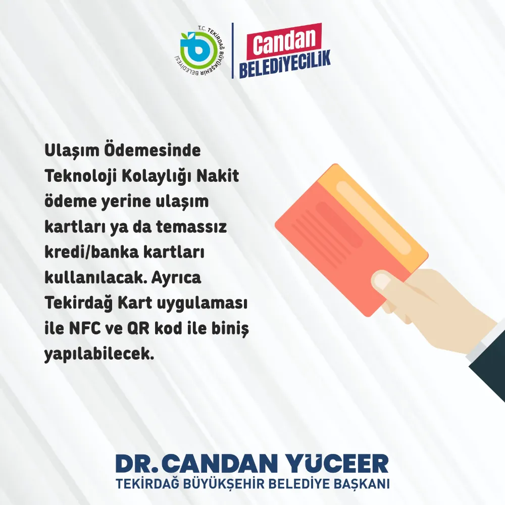 Bu hatlarda nakit ödeme yerine, ulaşım kartları ya da temassız kredi/banka kartları kullanılacak. Ayrıca Tekirdağ Kart uygulaması ile NFC ve QR kod ile biniş yapılabilecek. Vatandaşlar, Tekirdağ Kart üzerinden online bakiye yükleme ve dolum noktalarına ilişkin bilgilere www.tekulas.com.tr adresinden ulaşabilecek.
