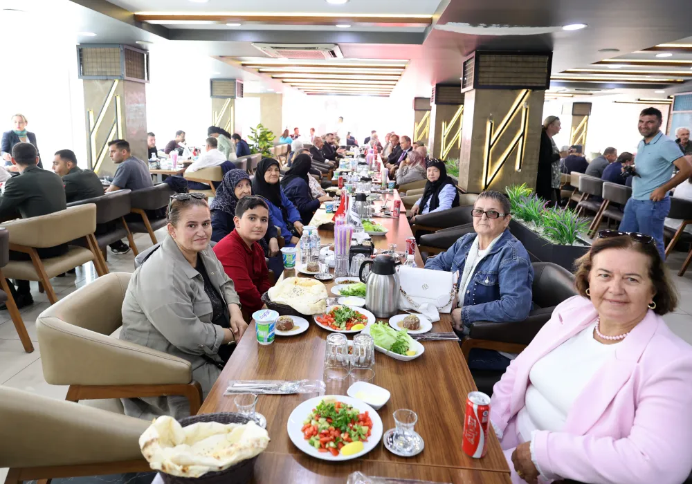Cumhuriyet Meydanı’ndaki törenin ardından protokol üyeleri, gaziler, şehit aileleri ve gazi yakınları ile yemek programında bir araya geldi.