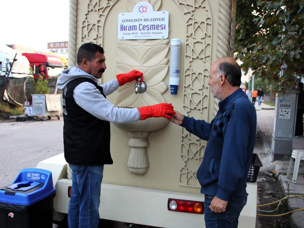 Çerkezköy Belediyesi tarafından 2015 yılında Gazi Mustafa Kemal Paşa Mahallesi Amfi Tiyatro yanında, 2022 yılında ise Kızılpınar’da hizmete sunulan Seyyar İkram Çeşmelerinden hafta içi her sabah yeniden sıcak çorba ikramı yapılmaya başlandı.