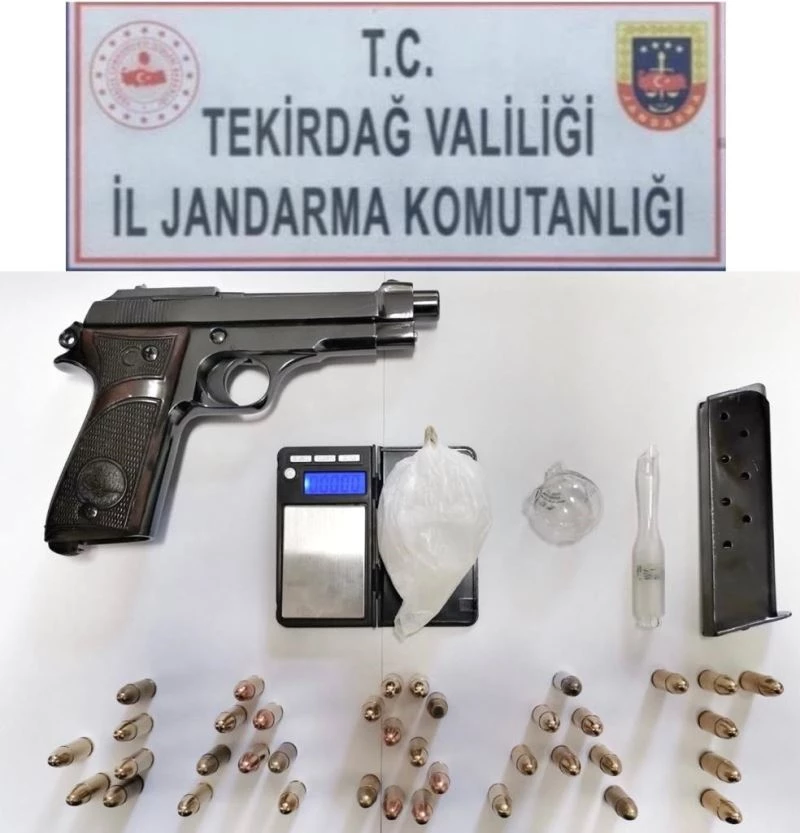 Tekirdağ’ın Çerkezköy ilçesinde İlçe Jandarma Komutanlığı ekipleri, titiz bir operasyon sonucunda uyuşturucu tacirlerine geçit vermedi. İlçe Jandarma Komutanlığı ekipleri uyuşturucu madde ticareti yapıldığına dair bir ihbarı değerlendirmesi neticesinde bahse konu işyerinde arama gerçekleştirerek uyuşturucu ve ruhsatsız tabanca ele geçirdi.