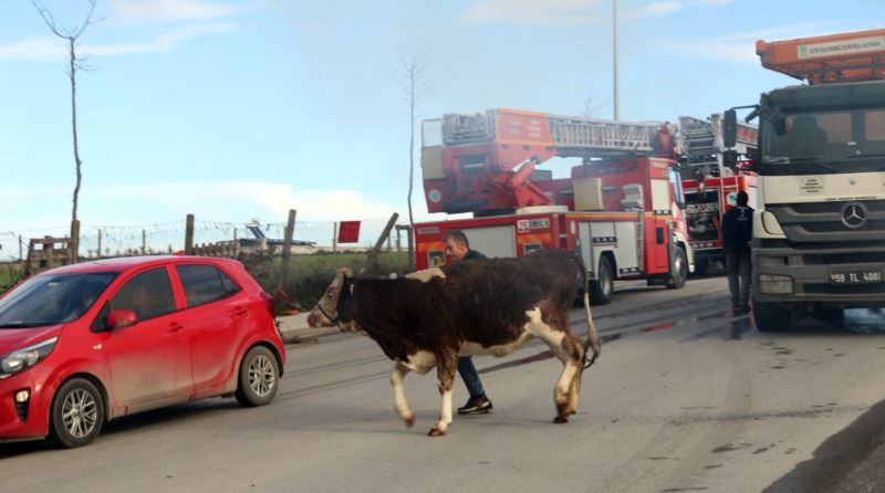 Tekirdağ’ın Çerkezköy ilçesinde tek katlı müstakil evde çıkan yangın korkuttu. Evdeki yangın itfaiye ekiplerinin uzun uğraşları sonrası kontrol altına alınırken bir büyükbaş hayvan ise telef olmaktan son anda kurtarıldı.
