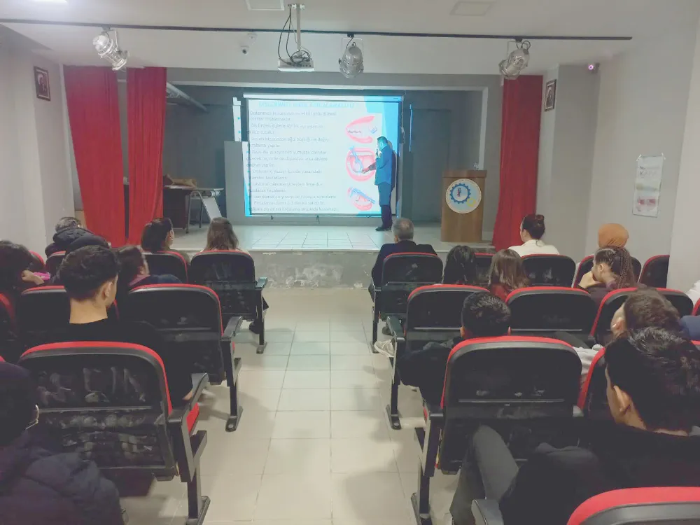Çerkezköy Kızılpınar Çok Programlı Anadolu Lisesi’nde İlçe Sağlık Müdürlüğü personeli tarafından ‘Ağız ve Diş Sağlığı’ eğitimi verildi.