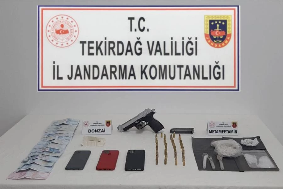 Jandarma ekiplerince Çerkezköy Kızılpınar ve Veliköy Mahallelerinde 4 ayrı adreste eş zamanlı yapılan arama faaliyetleri neticesinde 3 şüpheli şahıs yakalandı. Aramalarda, 468 gram metamfetamin, 2 gram bonzai, 1 adet 9 mm çapında tabanca, 29 adet 9 mm çapında tabanca fişeği, 3 adet uyuşturucu kullanma aparatı, 3 adet cep telefonu, bin 600 TL ele geçirildi.