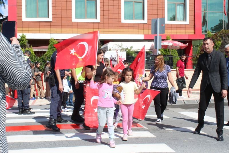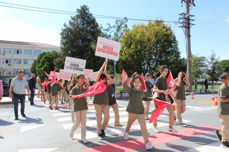 Etkinlik kapsamında, 75’inci Yıl İlköğretim Okulu ve Zübeyde Hanım Anaokulu öğrencileri ‘Elimizde Bayraklarla 29 Eylül’de yaya geçidinde buluşuyoruz’, ‘Yayalara öncelik duruşu, hayata saygı duruşu’ pankartlarıyla yaya geçidinden geçti.