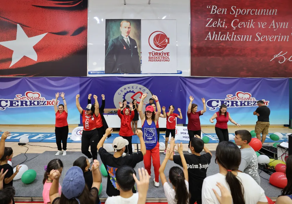 Çerkezköy Belediyesi Gençlik ve Spor Hizmetleri Müdürlüğü tarafından iki dönem halinde düzenlenen Yaz Spor Okulu açılış programı öncesinde kayıt yaptıran tüm çocuklara kıyafetleri teslim edildi. Kıyafetlerini alan çocuklar daha sonra Zumba Kids Eğitmeni Habibe Gülper tarafından gerçekleştirilen Zumba etkinliğinde eğlenceli anlar yaşadı. Yüz boyama etkinliğinin de yapıldığı açılış programında çocuklar, animatörler eşliğinde çeşitli oyunlar oynayarak Yaz Spor Okulu’na keyifli bir başlangıç yaptılar.
