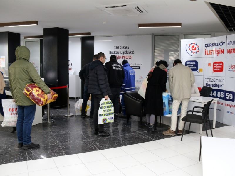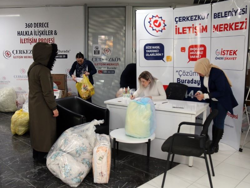 Kahramanmaraş ve çevre illerdeki Depremzedelere başta hazır gıda, ısıtıcı, battaniye, kullanılmamış giysi ve bot olmak üzere yardımlarını ulaştırmak isteyen vatandaşlar Çerkezköy Belediyesi Hizmet Binası’na akın etti.