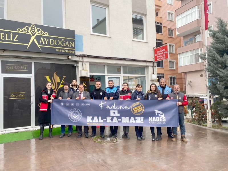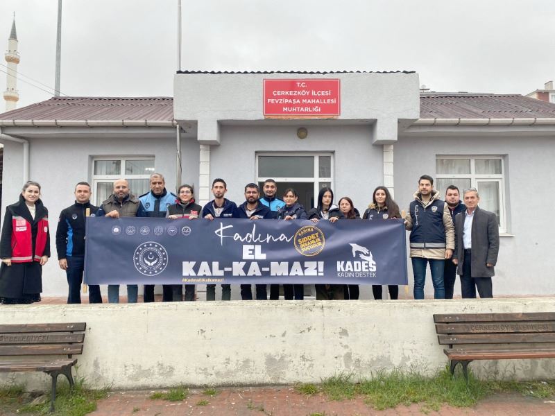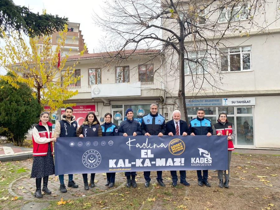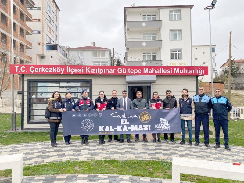 Polis, zabıta ve belediye sosyal hizmetler personeli 25 Kasım-5 Aralık tarihleri arasında ilçenin bilinen bölgelerinde, Kızılpınar Kahveler Durağı, Çerkezköy Cumhuriyet Meydanı, Veliköy Belediye Meydanı, Çerkezköy İlçe Devlet Hastanesi Bahçesi ve Muhtarlık önlerinde ‘Kadına El Kalkamaz’ pankartını açarak farkındalık oluşturdu. Çevredeki vatandaşlara verilen mesaj renkli görüntüler oluştururken, bir kez daha kadına karşı şiddete yönelik dikkat çekildi.