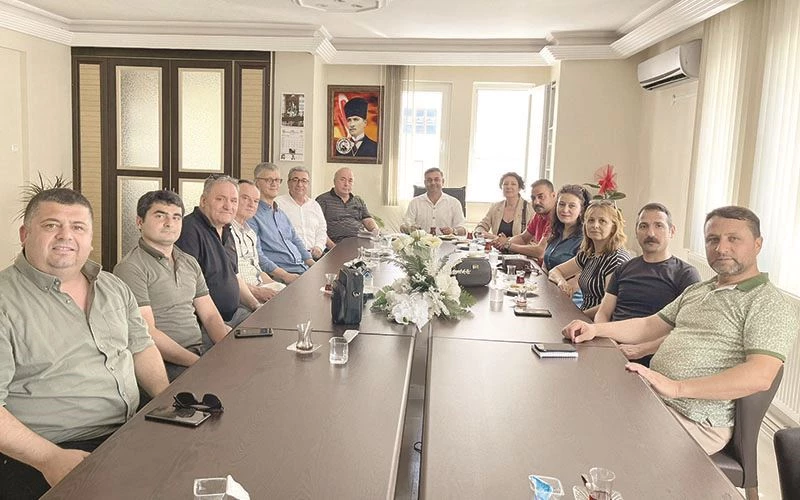 Yönetimiyle birlikte CHP’lileri misafir eden Esnaf ve Sanatkarlar Odası Başkanı Erkan Zümbül, İl Başkanı Saygın’a nazik ziyareti için teşekkür etti.