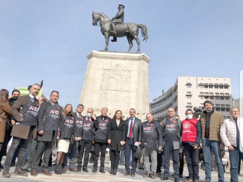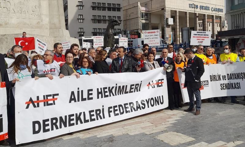Sağlık emekçilerinin sadece kendi hakları için değil halk sağlığı için meydanlarda olduğunu vurgulayan Dr. Yüceer, “Pandeminin ilk gününden bu yana büyük bir özveriyle canı pahasına her gün işine giden, özverili bir şekilde sağlık sistemi çökmesin, hastalar ölmesin diye mücadele eden sağlık emekçileri bugün Türkiye’nin her yerinde, Ankara’nın göbeği Ulus’ta hak mücadelesi vermek zorunda kalmaktadır. Sağlık emekçileri, en çok hastalanan, en çok ölen meslek grubu olmasına rağmen Covid-19’u meslek hastalığı saymayan, sağlığı değil ekonomik çıkarları önceleyen, sağlığı 5 dakikaya sığdırmaya çalışan, sağlıksız, güvencesiz, ağır çalışma şartlarında çalışmayı, angaryayı dayatan, sağlıktaki şiddete karşı etkin bir yasa yapmayan, mesleki değerleri yıpratan ve sağlık emekçilerine hak ettiği ücreti vermeyen, sağlık emekçilerine yoksulluk sınırı altında bir ücreti dayatan zihniyete karşı Türkiye’nin her yerinde sadece hakları için değil halk sağlığı için, koruyucu sağlık hizmeti için mücadele veriyor. Pandemi günlerinde ‘Hakları ödenemez’ denilerek balkondan alkışlanan sağlık emekçilerine bugün yapılan reva mıdır? Sağlık emekçileri bunu mu hakkediyor” ifadelerini kullandı.