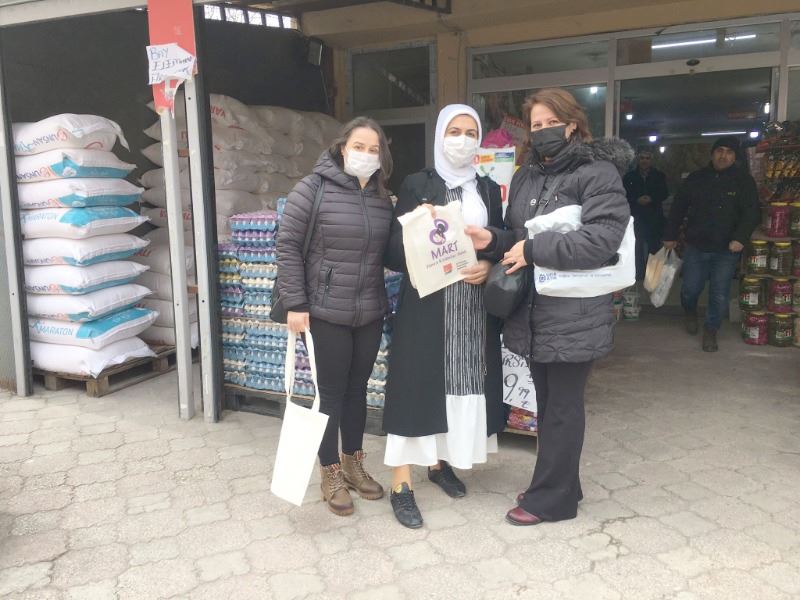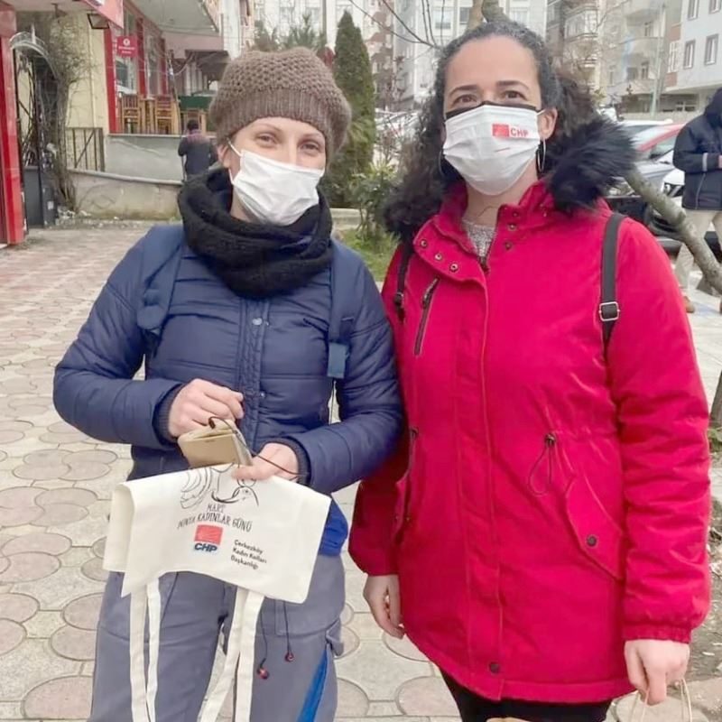CHP Çerkezköy İlçe Kadın Kolları Teşkilatı, emekçi kadınlara kendi tasarımları olan çantaları hediye edip günlerini kutladı.