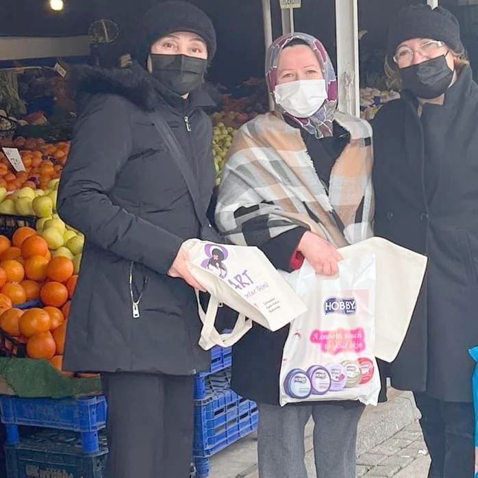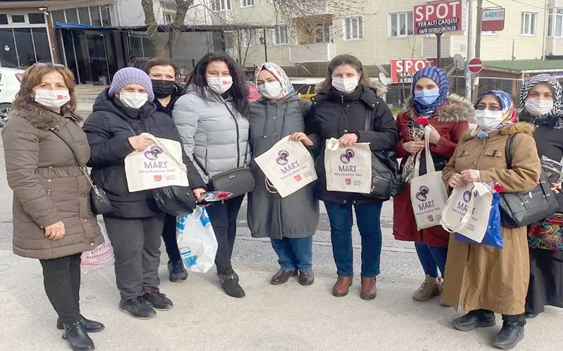 Cumhuriyet Halk Partisi(CHP) Çerkezköy İlçe Kadın Kolları Teşkilatı 8 Mart Dünya Emekçi Kadınlar Günü münasebetiyle servis duraklarında emekçi kadınlara kendi tasarımları olan çantaları hediye edip günlerini kutladı.