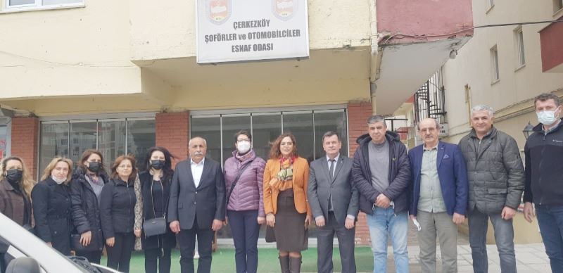İlçe Başkanlığı ziyaretinin ardından Dr. Candan Yüceer, İlçe Başkanı Ayfer Dönmez, İlçe Kadın Kolları Başkanı Emel Şencan ve yönetim kurulu üyeleri ile birlikte ilk olarak Çerkezköy Şoförler ve Otomobilciler Odası Başkanlığı’na yeniden seçilerek güven tazeleyen Mustafa As ve yönetimini ziyaret etti. Başkan Mustafa As’a başarılar dileyen Yüceer daha sonra Çerkezköy TMMOB Mimarlar Odası ziyaretinde Başkan Sinan Meral ile Tekirdağ’ın alt yapı ve kentleşme sorunlarına dair fikir alışverişinde bulundu. TMMOB Mimarlar Odası’nın Tekirdağ’ın kent estetiği ve yenilikçi yapılar alanında değer katmaya devam edeceğine inandığını belirten Dr. Yüceer daha sonra Çerkezköy Motorlu Taşıyıcılar Kooperatifi Başkanı Yılmaz Arat’ı ziyaret etti. Başkan Yılmaz Arat’la ülke gündemine dair değerlendirmelerde bulunan ve nakliyecilerin sorunlarını dinleyen Dr. Yüceer, “Akaryakıt zamları tüm sektörleri olumsuz etkiliyor. Enerji maliyetlerindeki en ufak bir artış tüm sektörlerde fiyatların yukarı doğru ivmelenmesine neden oluyor. Taşımacılık sektörü bu zamlardan direkt olarak olumsuz etkilenen sektörlerin başında geliyor. Dolar, avro garantili yolların da yüksek akaryakıt zamlarının faturası da nakliyecilerimize kesiliyor. Bu memlekette sosyal adaleti, eşitliği, hukuku, güveni tekrar inşa edeceğiz” diye konuştu.
