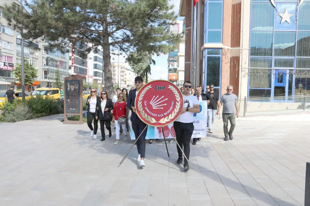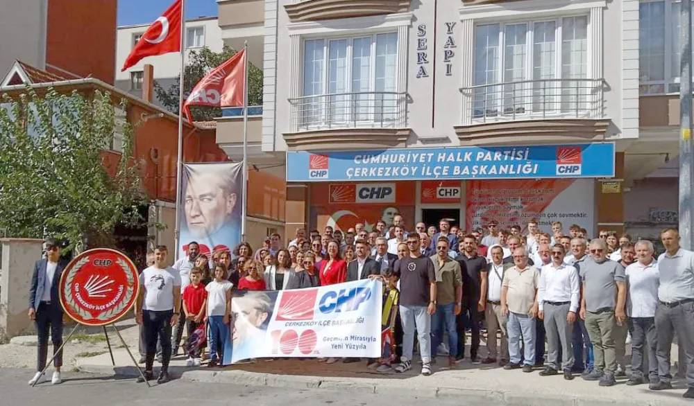 Cumhuriyet Halk Partisi Çerkezköy İlçe Teşkilatı 100’üncü yıldönümü programı düzenledi. İlçe teşkilatında toplanan partililer, İlçe Başkanı Ayfer Dönmez öncülüğünde Cumhuriyet Meydanı’na yürüdü, ardından da Atatürk Anıtı’na çelenk sundu.