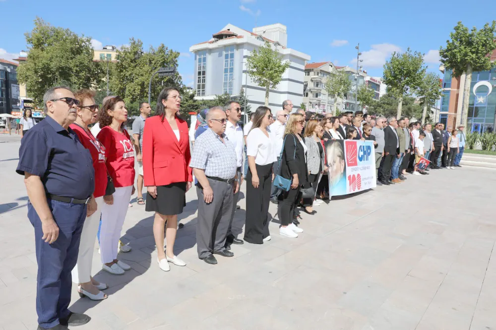 Çelenk sunumunun ardından bir konuşma yapan CHP Çerkezköy İlçe Başkanı Ayfer Dönmez, “Cumhuriyet Halk Partisi’nin 100. Kuruluş Yılını büyük bir inanç ve gururla kutlamanın mutluluğunu yaşıyoruz” dedi.