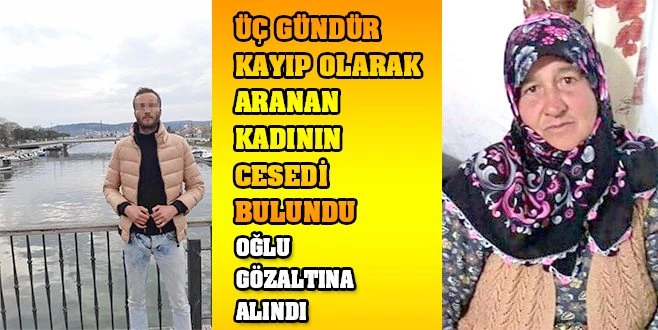 Edirne`nin Uzunköprü ilçesinde 3 gündür kayıp olarak aranan 61 yaşındaki kadının cesedi, başı kesik halde köye 2 kilometre uzaklıkta bulundu. Cinayet şüphesiyle gözaltına alınan oğlu ile birlikte 3 kişi adliyeye sevk edilirken, oğlunun da arama çalışmalarına katıldığı belirlendi.