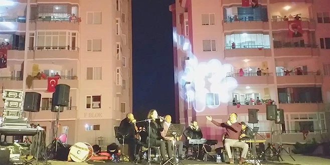 Tekirdağ?da sokağa çıkma kısıtlaması nedeniyle Süleymanpaşa Belediyesince bir sitenin önünde konser düzenlendi. Evlerinin önünde konseri duyan vatandaşlar balkonlara çıkarak bayrak ve alkışlarla günün stresini atmaya çalıştı.