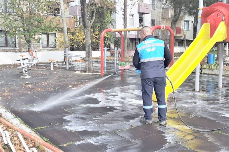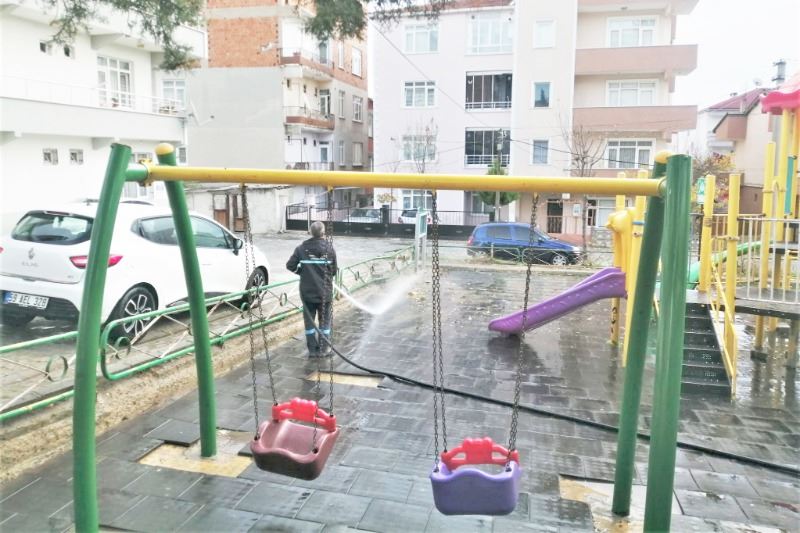 Sağlık kuruluşları ile kamu kurumlarının girişleri düzenli olarak dezenfekte edilirken, çocukların salgından korunmalarına destek olmak amacıyla ilçedeki çocuk parkları belirli aralıklarla özel ekipmanlar ile ilaçlanarak arındırılıyor.
