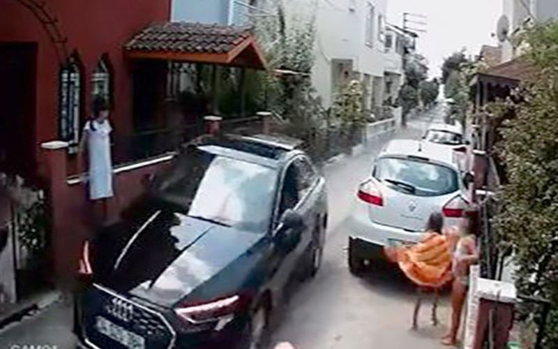 Güvenlik kamerası görüntülerine yansıyan görüntülerde, daracık sokakta aşırı hızla ilerleyen 34 DZS 384 plakalı bir otomobil, o sırada sokakta oyun oynayan çocukları umursamadan geçmeye çalışıyor. Aracı son anda fark eden 2 çocuktan biri duvara yapışarak kıl payı kurtulurken, diğer bir çocuk ise topun peşinden koşarken bir anlık aracı görüp geri kaçmasıyla faciadan kıl payı kurtulduğu gözlendi.