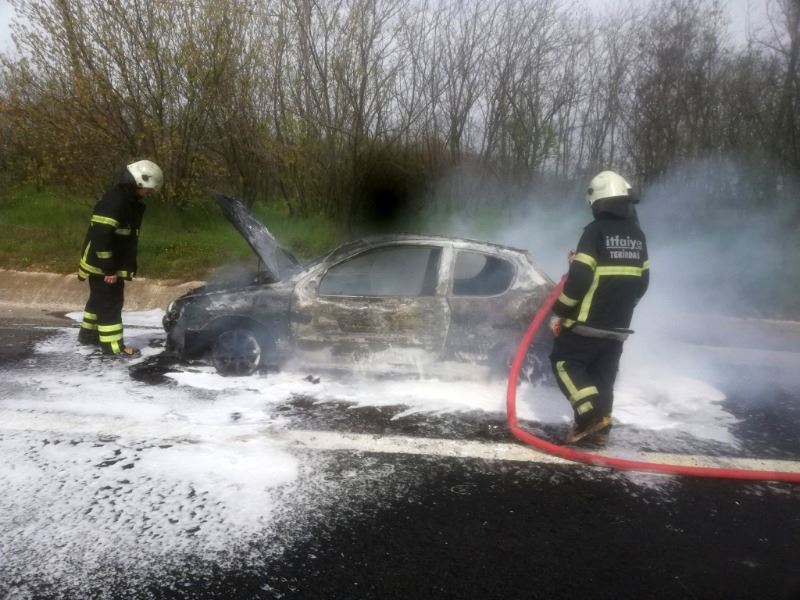 Tekirdağ’da tamirden çıkarılan otomobil, otoyolda seyir halindeyken cayır cayır yanarak küle döndü.