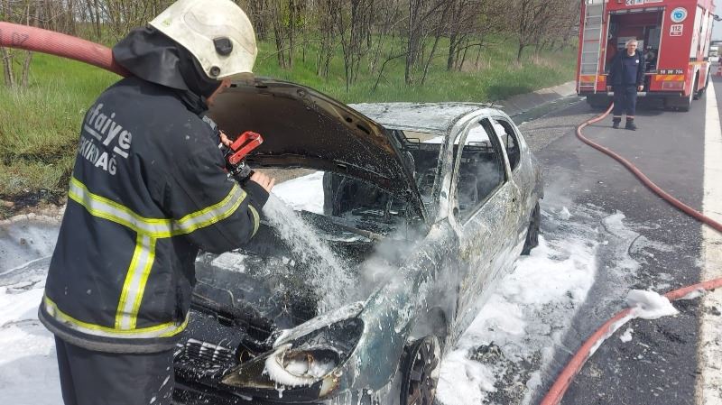 Olay, Avrupa Otoyolu üzeri Ergene Velimeşe Mahallesi sınırlarında bulunan Çorlu Gişeler mevkiinde meydana geldi. İstanbul’dan Çorlu istikametine seyreden Muhsin Görecek idaresindeki 59 AGC 491 plakalı otomobilin motor kısmında yangın çıktı.