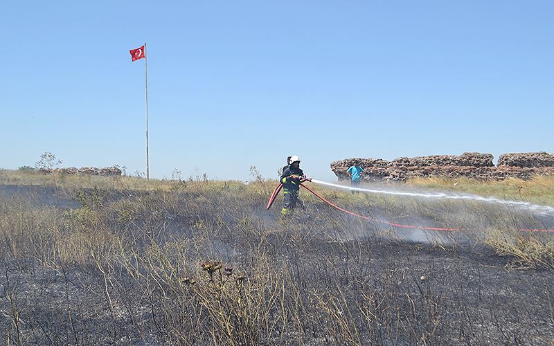 Tekirdağ’da tarihi Çorlu Kalesi çevresindeki otluk alanda yangın çıktı.