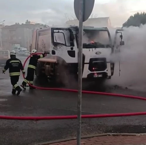 Tekirdağ Çorlu’da belediyeye ait çöp kamyonu seyir halindeyken alev alev yandı.