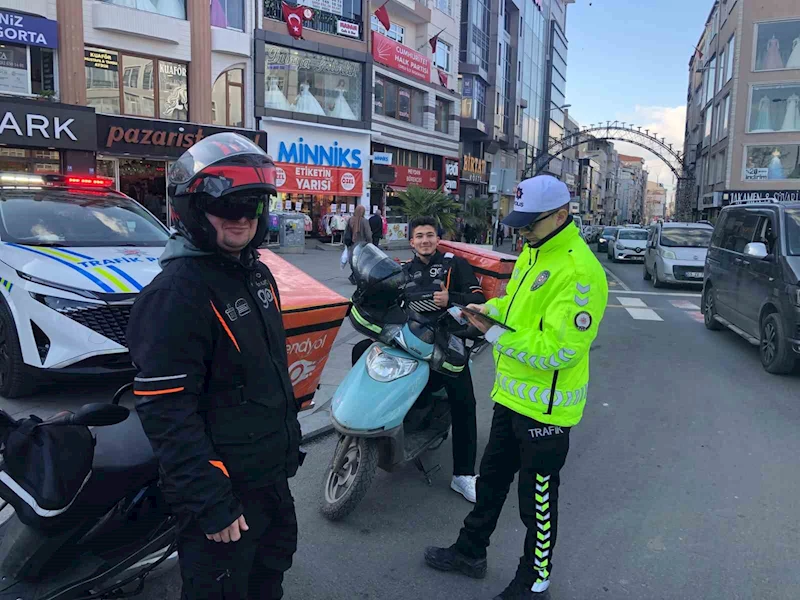 İlçede yoğun trafik akışının olduğu caddelerde Çorlu İlçe Emniyet Müdürlüğü Trafik Büro Amirliği ekiplerince motosikletlilere yönelik denetimler gerçekleştirildi. Denetimlerde kurallara uyan motosikletli kuryeler örnek gösterildi.
