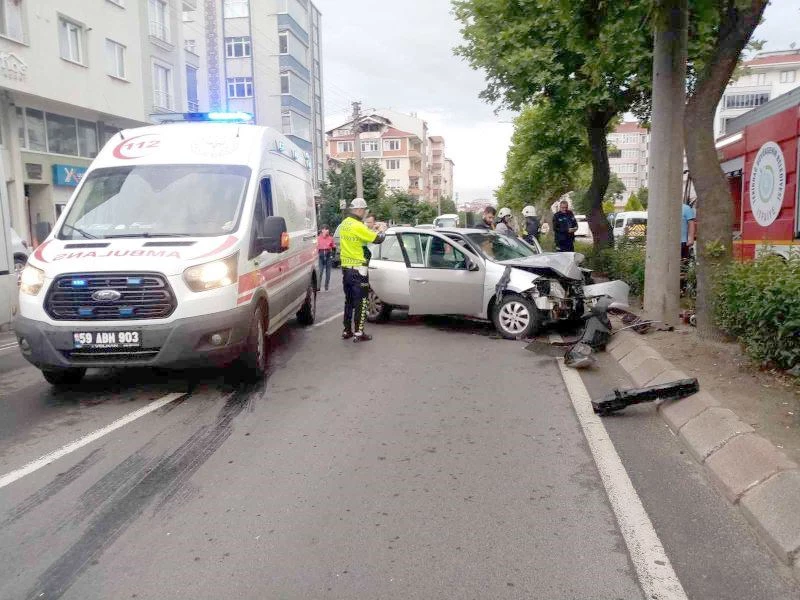 Kaza, Şeyh Sinan Mahallesi Atatürk Bulvarı üzeri Trakya Hayvan Hastanesi mevkiinde meydana geldi. Edinilen bilgiye göre, Ali Osman Çelebi Bulvarı istikametinden ilçe merkezi istikametine seyreden Burak Otman (31) idaresindeki otomobil, sürücüsünün direksiyon hakimiyetini kaybetmesi sonucu orta refüjdeki beton aydınlatma direğine çarptı.