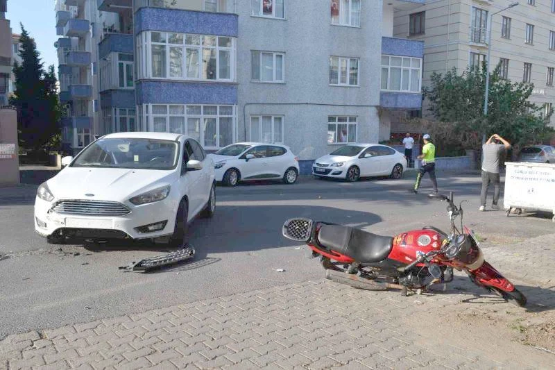 Çorlu'da otomobil ile kafa kafaya çarpışan motosikletli yaralandı.