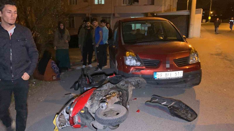 Çorlu ilçesinde otomobille kafa kafaya çarpışan motosikletin yabancı uyruklu sürücüsü yaralandı.