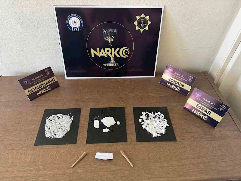 Yapılan aramalarda, 4 parça halinde net 133 gram metamfetamin, 0,77 gram kokain, 2 adet sigaraya karıştırılmış 3,10 gram esrar ele geçirildi.