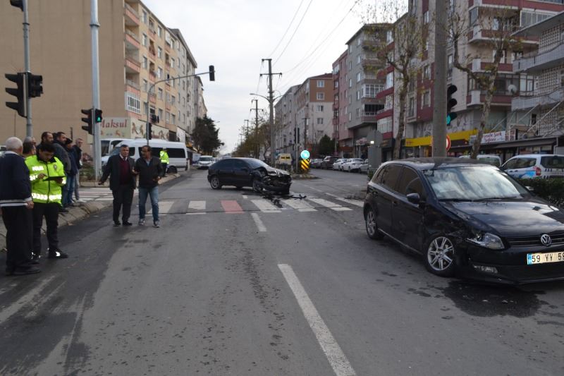 Tekirdağ’ın Çorlu ilçesinde kırmızı ışık ihlali yaptığı iddia edilen bir otomobilin bir araçla çarpıştığı yaralamalı kaza kameraya yansıdı.