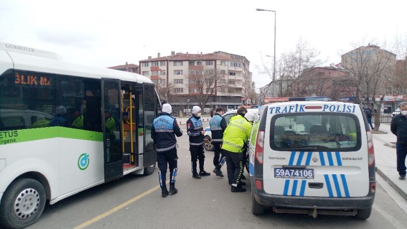 Çorlu’da şehir içi yolcu taşımacılığı yapan minibüsler ile M plakalı minibüsler denetlendi.