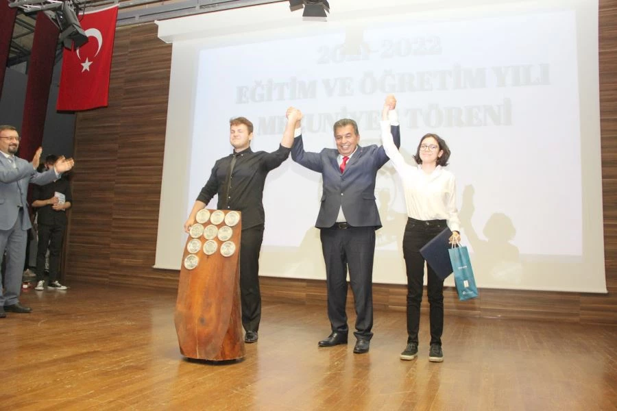 Özel ÇOSB Mesleki ve Teknik Anadolu Lisesi 2021-2022 Eğitim-Öğretim yılı yılsonu mezuniyet töreni yoğun bir katılımla gerçekleşti. Okulun Konferans Salonunda gerçekleşen törene;Çerkezköy Organize Sanayi Bölgesi (ÇOSB) Yönetim Kurulu Başkanı Eyüp Sözdinler,ÇOSB Yönetim Kurulu Yedek Üyesi ve Okul Yönetim Kurulu Üyesi Ahmet Temiroğlu, ÇOSB Yönetim Kurulu Yedek Üyesi Saim Buyruk, ÇOSB Bölge Müdürü Mehmet Özdoğan’ın yanı sıra Okul Müdürü Erkan Yalaza, sanayiciler, veliler, öğretmenler ve öğrenciler katıldı.