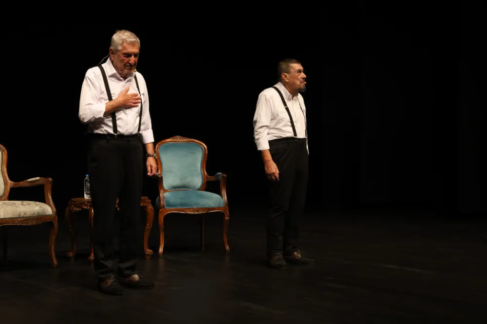 15 Ekim 2024 Salı günü Saat 19:30’da, ÇOSB Kültür ve Sanat Merkezi’nde sahnelenen ‘Bir Varmış Bir Yokmuş’ adlı tiyatro oyununa yoğun ilgi gösterildi. Tiyatro severlerin tamamen doldurduğu salonda seyirciler arasında Tekirdağ İl Emniyet Müdürü Ahmet Metin Turanlı da yer aldı. ÇOSB Yönetim Kurulu Başkanı Eyüp Sözdinler ve yönetim kurulu üyelerinin de izlediği ünlü ustalar Cihat Tamer ve Zihni Göktay, sahnede, beyaz perdede ve televizyonda geçen 60 yıllık sanat hayatlarını özetledi. Halkın kalbinde taht kurmuş iki ustanın acı-tatlı 60 yıllık hikayesine bir yolculuk olan gösterimde, tiyatro oyunları, kabareler, müzikaller, sinema filmleri, diziler, bir varmış bir yokmuş misali… Masal tadında, müzik ve şarkılar eşliğinde, ÇOSB salonun dolduran izleyiciye nostalji yaptırdı, keyifli anlar yaşattı.