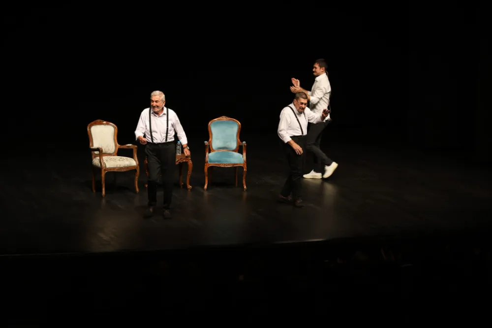 Oyunun sonunda usta sanatçıları tebrik eden ÇOSB Yönetim Kurulu Başkanı Eyüp Sözdinler, çiçek takdim etti.