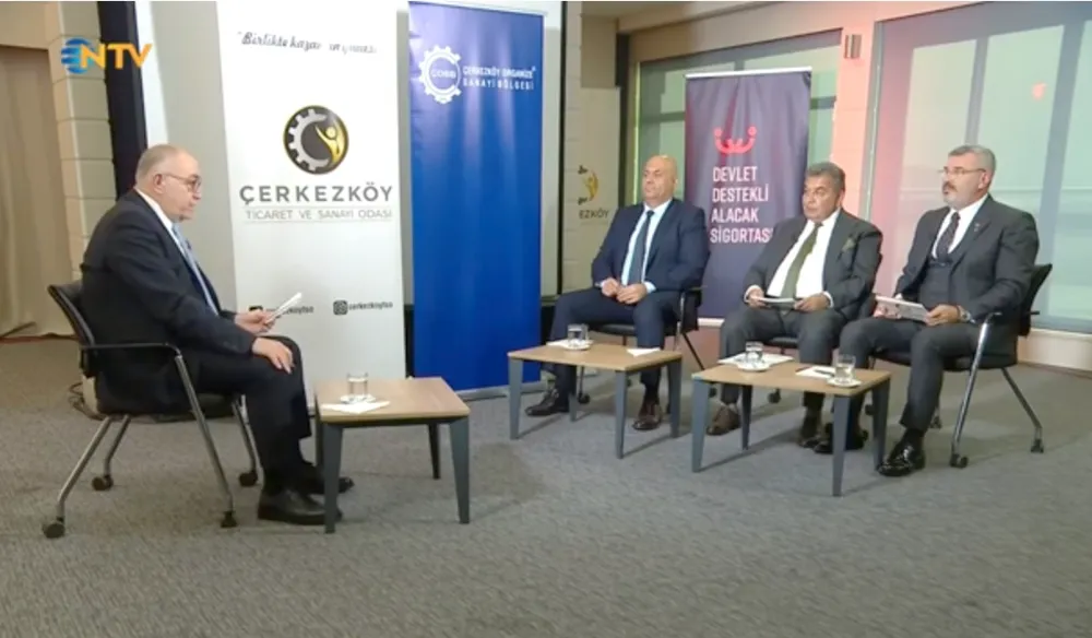 Noyan Doğan’ın moderatörlüğünü yaptığı NTV Bakış programı bu hafta Çerkezköy Organize Sanayi Bölgesi (ÇOSB) Konferans Salonu’nda gerçekleştirildi. Çerkezköy Ticaret ve Sanayi Odası (ÇTSO) Yönetim Kurulu Başkanı Ahmet Çetin, ÇOSB Yönetim Kurulu Başkanı Eyüp Sözdinler ve Türk Restoranst Genel Müdür Yardımcısı Ali Sertaç Canal programa katıldı.