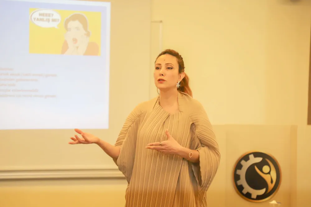 Esra Tümen, "Toplum önünde etkili konuşmak, insanlar ile başarılı iletişim kurmak sosyal yaşam ve kariyer hayatının en temel şartlarından biridir. Bu eğitim ile topluluk önü konuşmalarında nelere dikkat edilmesi gerektiği, heyecan, stres gibi durumların yönetimi, ikna yöntemleri ve özgüvenli konuşmalar yapabilmeyi öğrenecek ve uygulayabileceksiniz." ifadelerini kullandı.