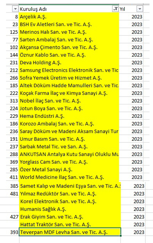 İstanbul Sanayi Odası (İSO), sanayi sektörünün devler ligini belirleyen “Türkiye`nin 500 Büyük Sanayi Kuruluşu Araştırması”nın 2023 yılı sonuçlarını açıkladı. Çerkezköy Ticaret ve Sanayi Odası’nın 29 üyesi, İSO İLK 500 içerisinde yer aldı. Oda Yönetim Kurulu Başkanı Ahmet Çetin, “Üretim üssü bölgemizin parlayan yıldızı üyelerimizi tebrik ediyor, kendileriyle gurur duyuyoruz.” ifadelerini kullandı.